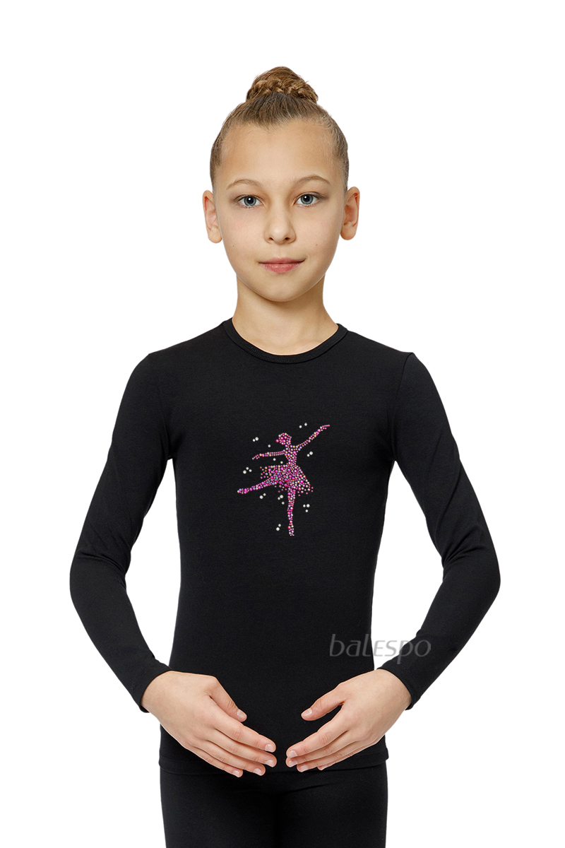 Gymnastické tričko s dlhým rukávom BALESPO BС 220.7-100 čierne s ružovými kamienkami "Tanečnica".