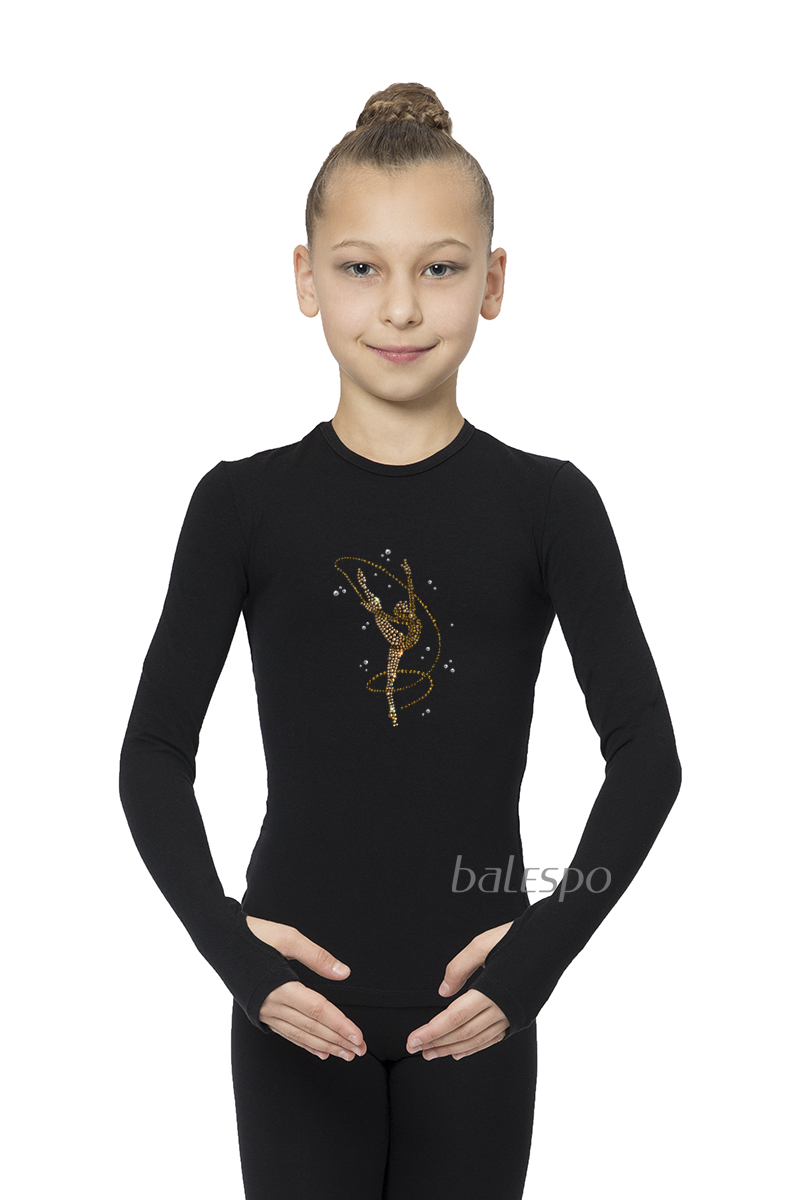 Gymnastické tričko s dlhým rukávom a otvorom na palec BALESPO BС 230.1-100 so zlatými kamienkami "Gymnastka so stuhou".